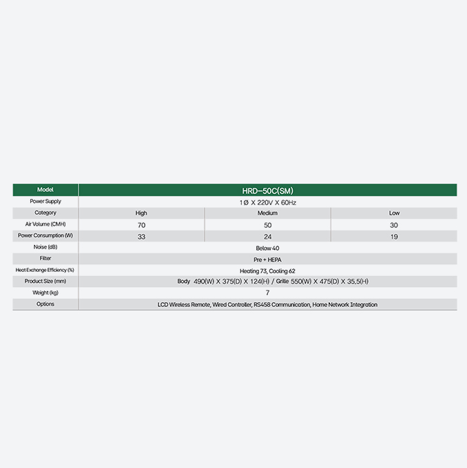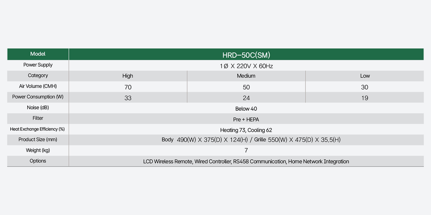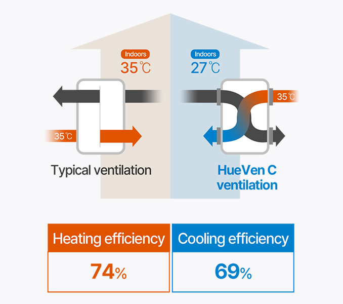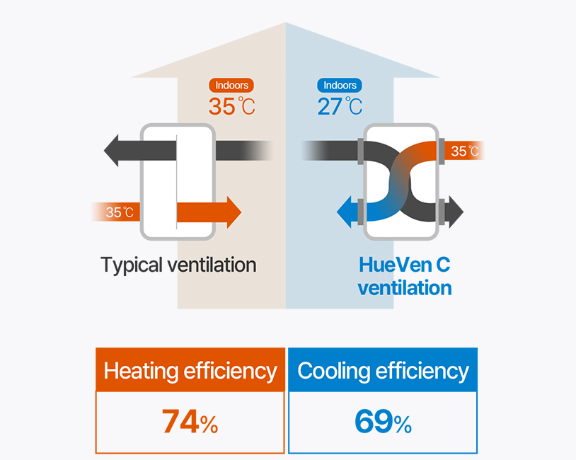 With high-efficiency energy exchange technology and a BLDC motor, you can save up to 70% of heating and cooling energy, reducing your seasonal heating and cooling costs compared to natural ventilation.