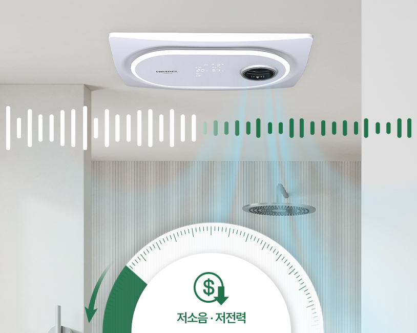 고성능 BLDC 모터는 소음과 전력 사용이 적어 전기료 부담없이 언제나 쾌적한 욕실 환경을 유지합니다.